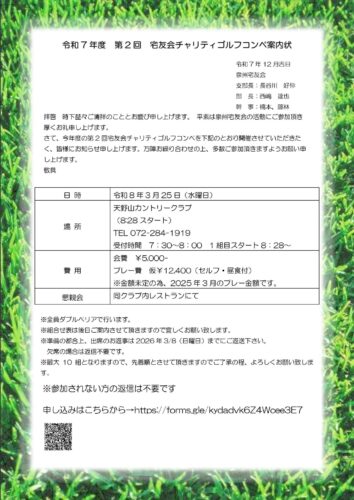 2025年度 第2回宅友会チャリティゴルフコンペのご案内