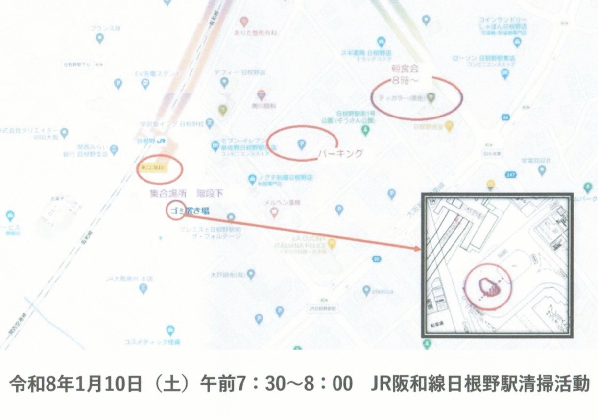 清掃活動: JR阪和線日根野駅 ・ 支部前