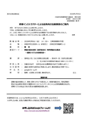 3/6研修インストラクターによる会員向け出前講習のご案内
